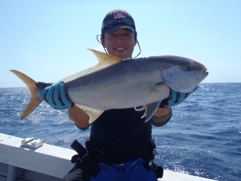 これまた沖縄カンパチ。10kg越えのカンパチを獲ってるテラとしては小さいか。。