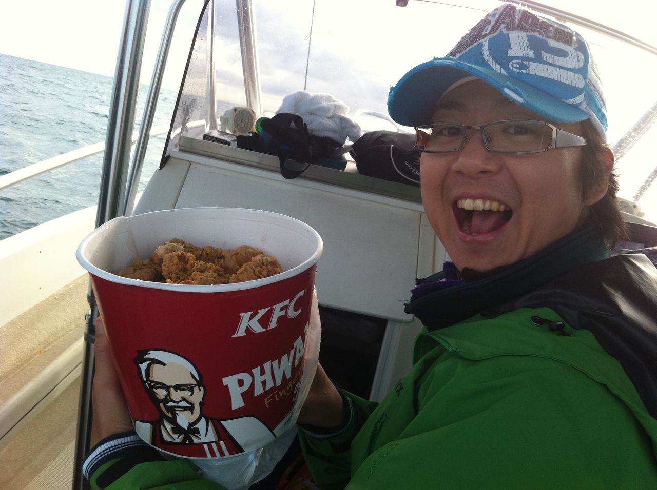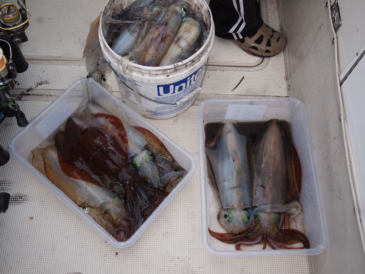 イカ先生が36パイ、RobとTonyも30数ハイをキャッチし、船中140〜150パイ。