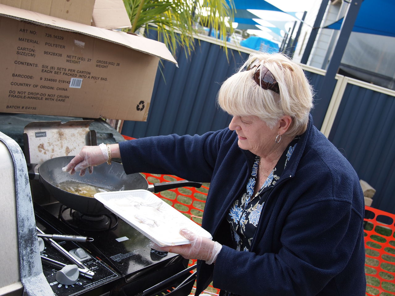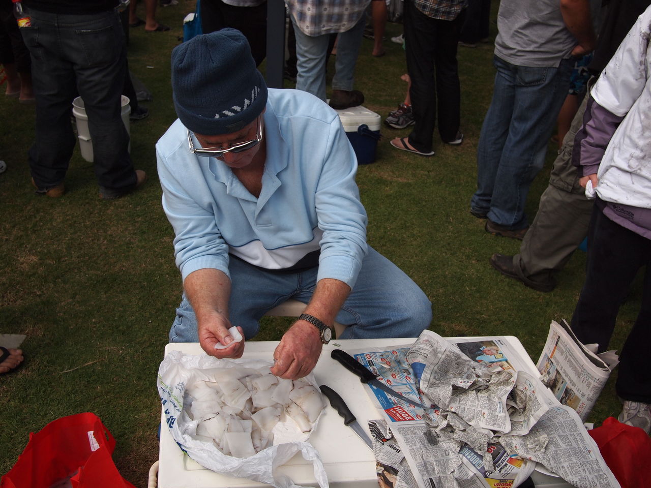 検量、集計の間にイカフライが参加者に無料でもてなされ、美味しいオージーアオリに舌鼓。これは、前日ボクらが釣ってきたオージーアオリです。
