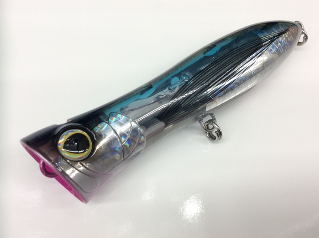 潮噛みが良く、移動距離の少ないポッピングを実現できるひょうたん型ボディ。水に絡みやすいので水面をルアーが転がってしまうようなミスアクション低減も狙っています。大音量ポッピングで注目を引き、喰わせやすい小型ボディに加えて、ルアーアクションが止まっている問もフラッシングを続けるフラッシュブーストを搭載です!