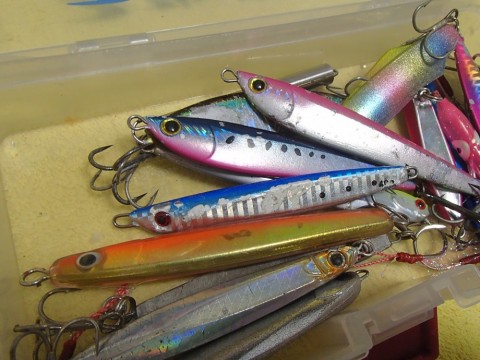 普段の外房で使いなれたジグ達も持って帰るのですが、カタクチイワシの多い宮崎沖ではロング系に反応が薄いこともあり、回頭性に優れシルエットの小さめのセミロング~ショートを中心に。
