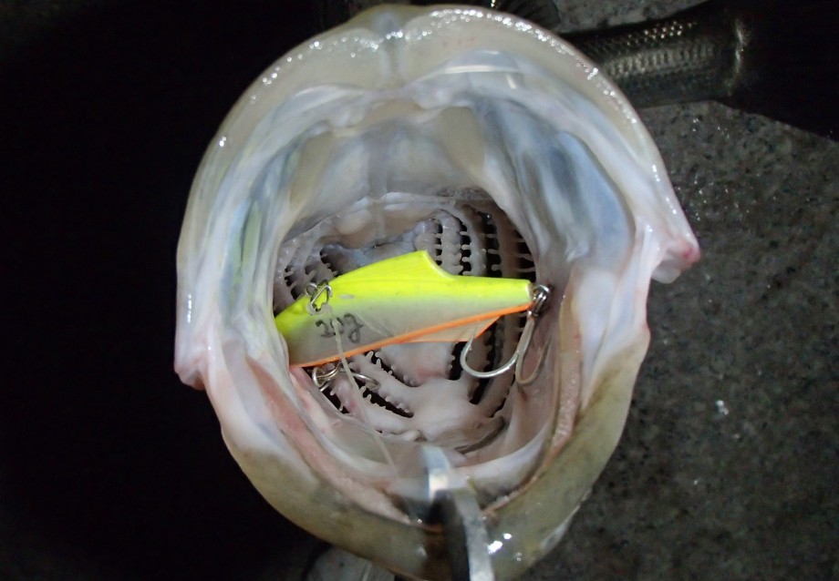 これ、実はルアーが口に挟まっているだけでフックが刺さっていないという… 笑