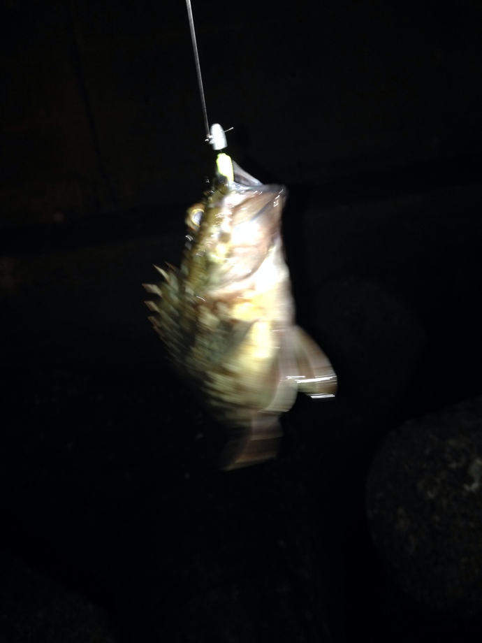 35cmくらいのを一匹釣って満足し、メバル調査へ。