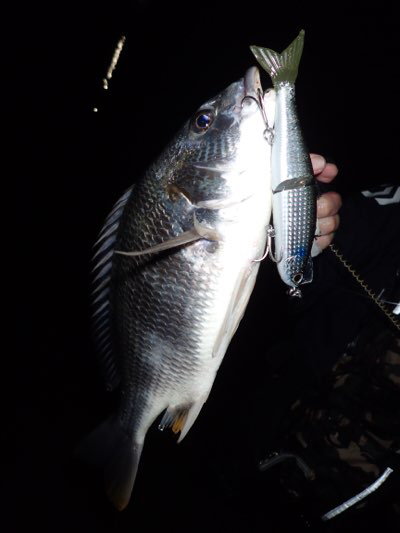 初日は、夕方に高知空港に到着後、例年なら知人のモツ鍋屋に向かうところ、翌日からの天候も考慮し、後ろ髪を引かれつつホテルにチェックイン後、夜も深まった時間に有望とされるポイントエントリー。2時過ぎまでチャレンジしましたが、アカメらしきボイルを確認するも、バイト無し。