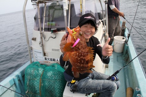 この後は、根魚ポイントに移動し、アカミズ(キジハタ)を