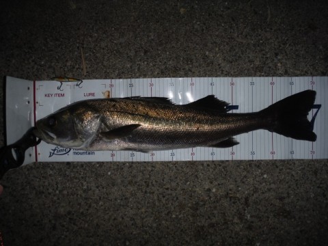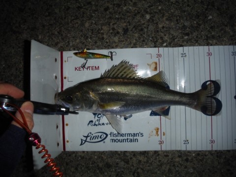 上がってきてびっくりシーバスだー、バラさないでよかったぁ。