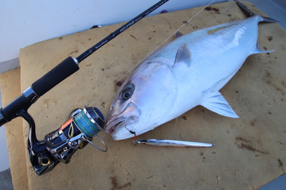 タックルは、外房の浅根で縦のコースをジャークする場面で非常に使いやすいNS614、ジグはSecond Stageマグマ140gという自分の秋のスタンダードタックルを選びました。