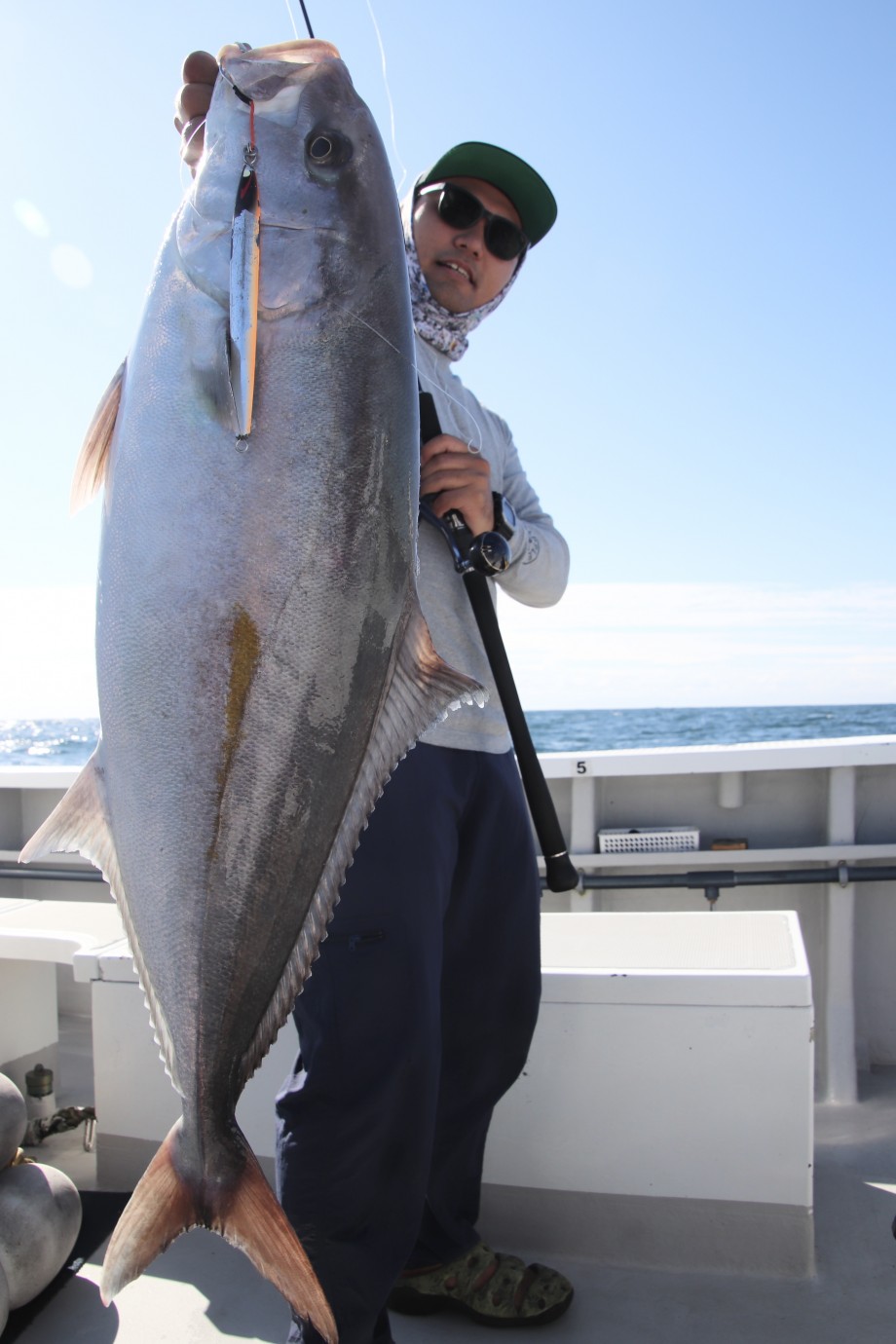 なかなかの抵抗で、久しぶりのまともな魚だったので苦戦しましたが、スタッフの田口さんの助言を頂き、走らせながら徐々に間合いを詰めていき、上がってきたのは外房では珍しい良いサイズのカンパチ!