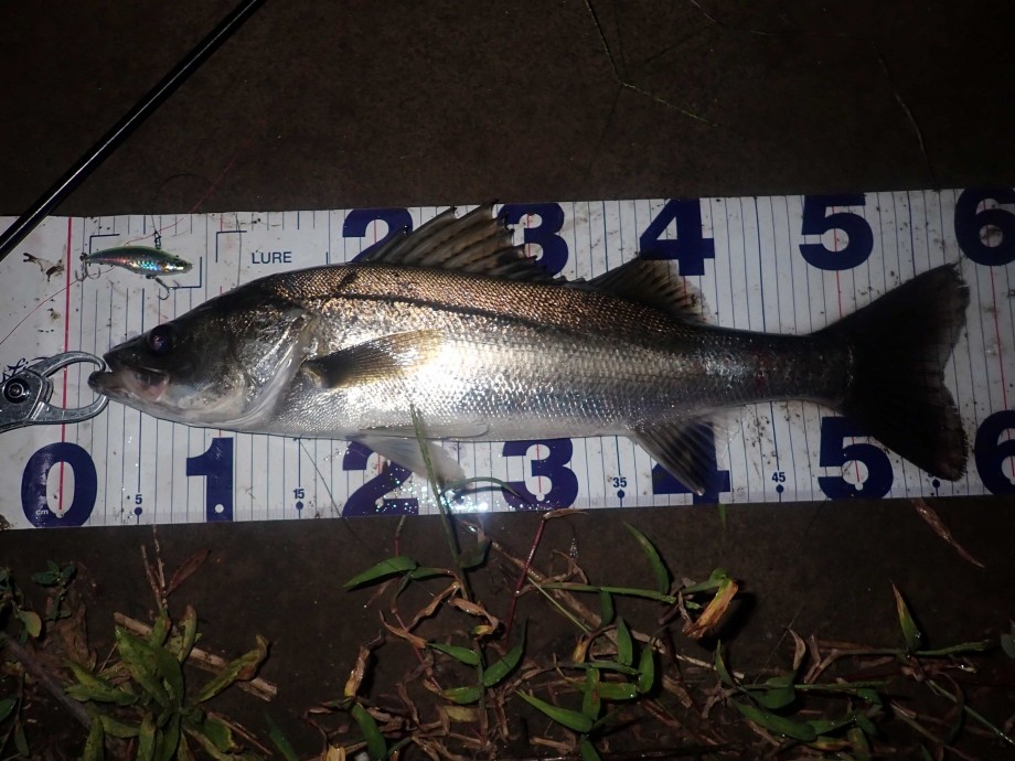 セイゴのショートバイトをかわし、やっと乗せて60㎝ないくらい。