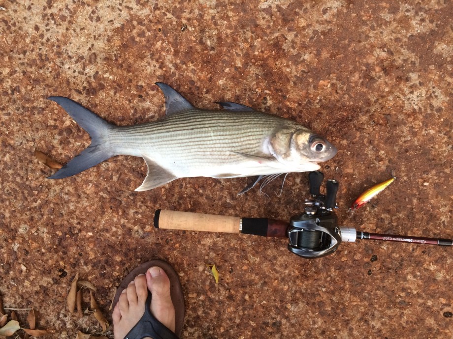 50cm近くある口がサメのような場所にあるコノシロに似た魚、DUO リアルズ ジャークベイト をひったくって行きました。(写真4)