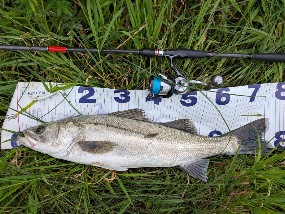 数度のエラ洗いをかわし無事ガッチリ体型の鱸さんをキャッチ!