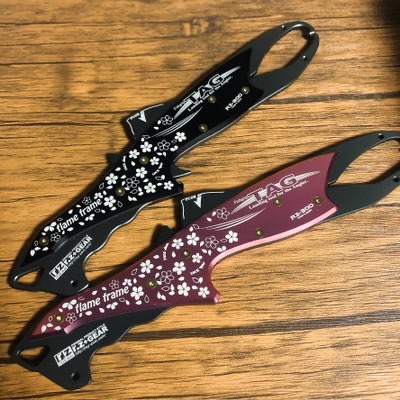 また、受付期間中ご応募頂いた方の中から抽選で贈答品のショートランディングシャフトと一緒に「flame frameオリジナルフィッシュグリップ」(大阪のRAY-ZEST様に作成して頂きました。カラーはピンクになります。)を1名様に、「flame frame×GOTO_OLSオリジナルキーホルダー」(長崎のGOTO_OLS様に作成して頂きました。)を2名様にお送り致します。