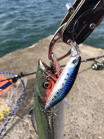 ミノーだと飛距離が出ないしぶっ飛び君は風が強いのと堤防が高いのでラインが煽られて表層に浮いてしまいあまりいい動きをしてくれない