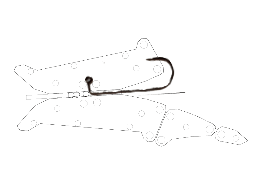 ジグフックのラインアイが通る必要最低限の穴を二箇所に明けて