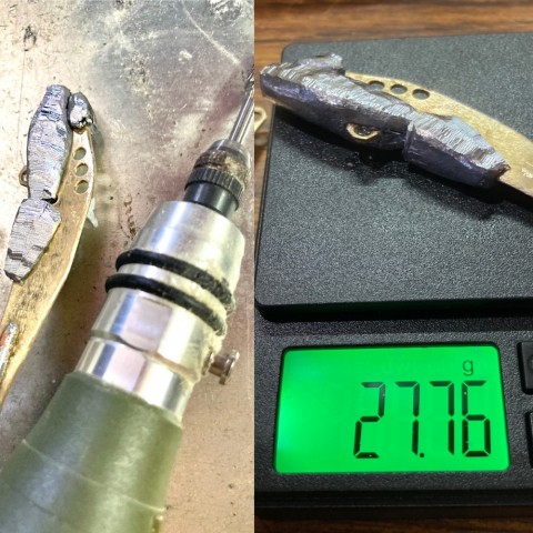 一旦雰囲気で鉛を装着していくあとで削るので目標26gとしても