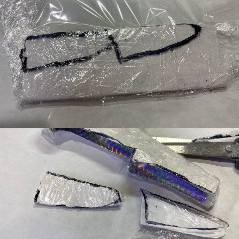 柔軟なラップで包み、マジックで縁取り。