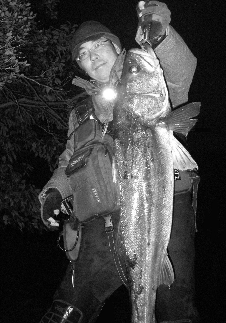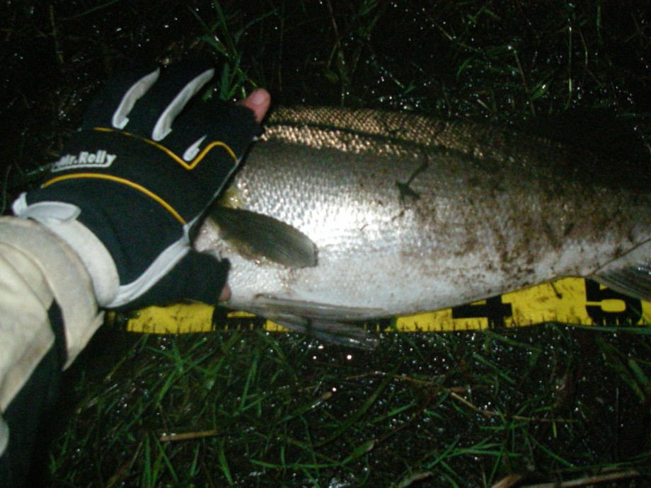 これは、10月末、落ち鮎を何匹も吐き出したリバーシーバスですが80ジャストでしたが、これが90後半だったら10kgいったかもわかりません。とにかく腹がパンパンでした。