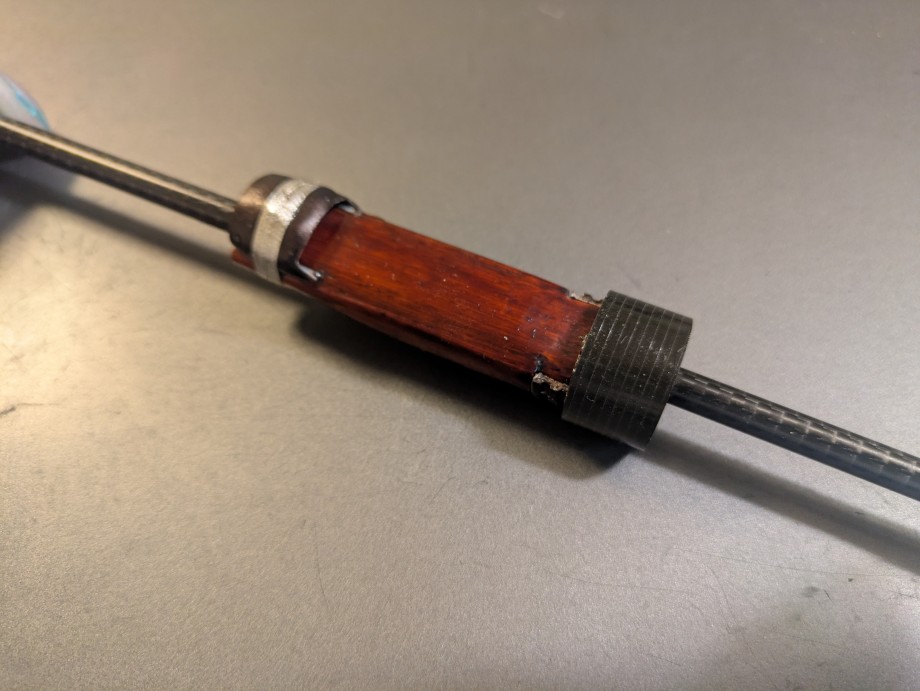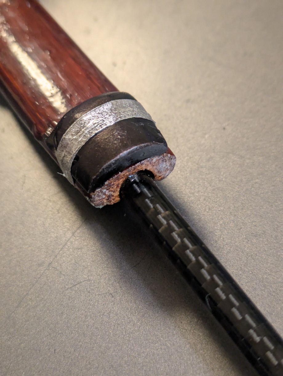今回の改良は、リールの向きが微妙に左を向いていましたので、リールシートを一度外して、穴を作り直しました。また竹の部分をリールフットの長さに合わせて切って、シェイプして追い込んでみました。