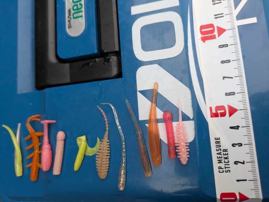 0.5gのジグヘッドにワームをつけて接近戦で、手返しよくワームによる反応を見ていきます。