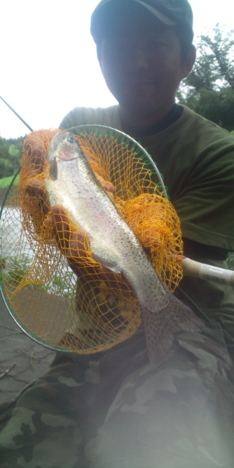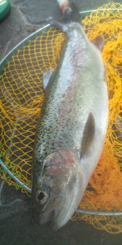 良型ニジマスゲット\(^o^)/ニジマス初体験で初ゲットや