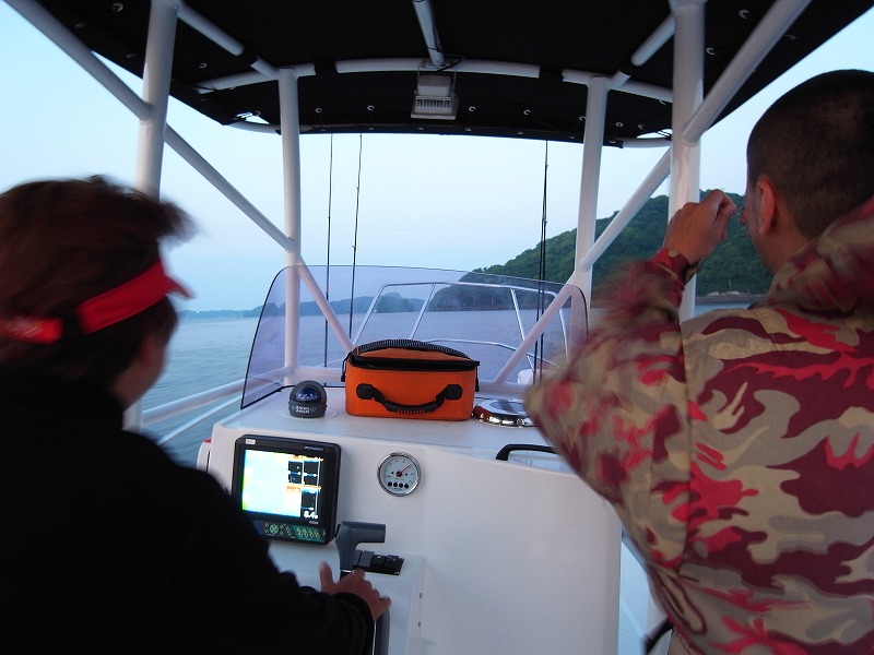 先ほどまでの緊迫した雰囲気とは全く別な感じでフルオープンエリア(当たり前かっ!)でのバーチカルな釣り。