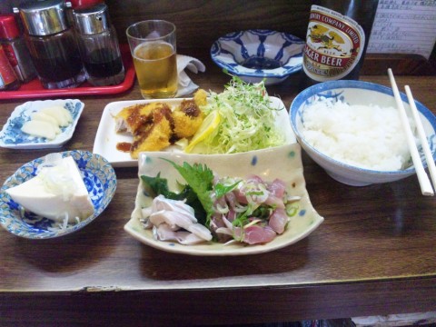 着いて自分は、さすけ定食のタタキとビールを注文。(もう我慢できません)