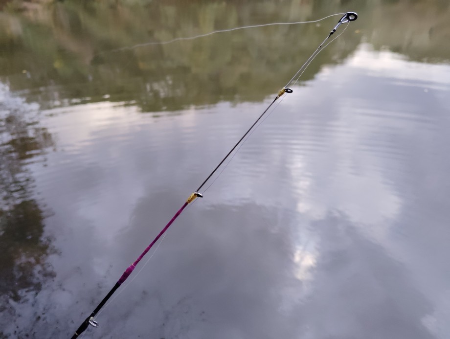 竿はダイコーの超高弾性ロッド・コブレッティのベイトミディアムの折れ竿にチタンティップを継いでスピニングに仕立てたリメイクロッド
