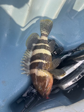 すると、初魚種のアオハタ(なぜかカヤック歴10年ななのに釣れなかった)、マハタ、キジハタの赤ちゃんがそれなりに釣れるが、キープサイズは釣れない…