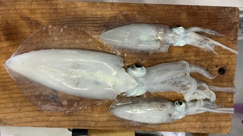 お魚はこれで満足したんで、Xで繋がってるカヤッカーさんに挨拶して帰ろうと思ったら、なんとイカを二桁釣ってるそうな…