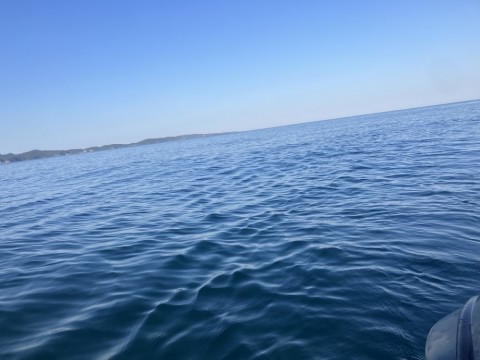 せっかくなんで、もう少し深いところに行こうと、水深二桁になったところから風に流されるままジグを落としたりキャストしてみたり