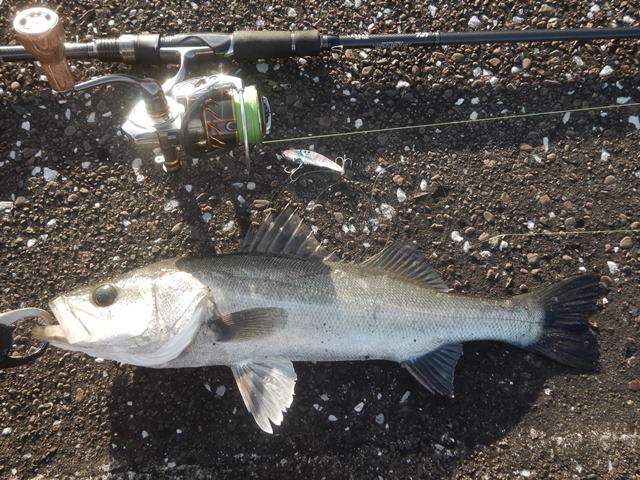 キャストが厳しので、ワームを足元に落とし込んで足元の魚を狙う作戦です。