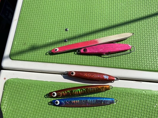 軽めのジグは、1個しか積んで来なかったので自作センターバランスの100gブルピン