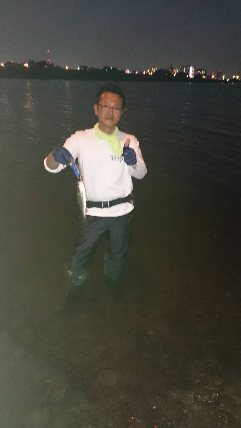 開始早々、バディはシーバスを釣り上げ、(僕への)プレッシャーは上がる中、バディは間髪入れずマルチ達成(汗)