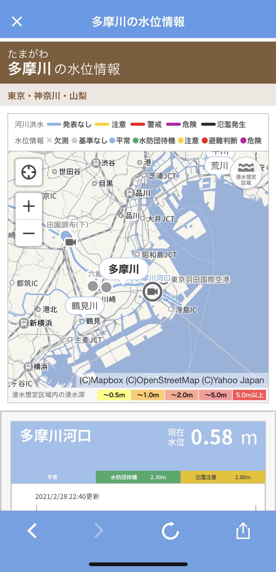 色んな機能があり、良く使うのが河川水位で見たいポイントをタップすると↓