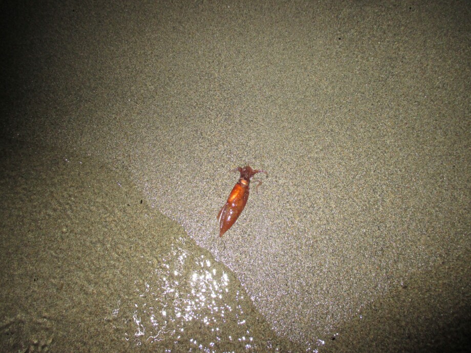 着いてみると、波打ち際にホタルイカいます♪