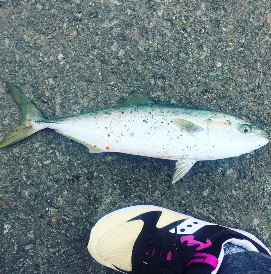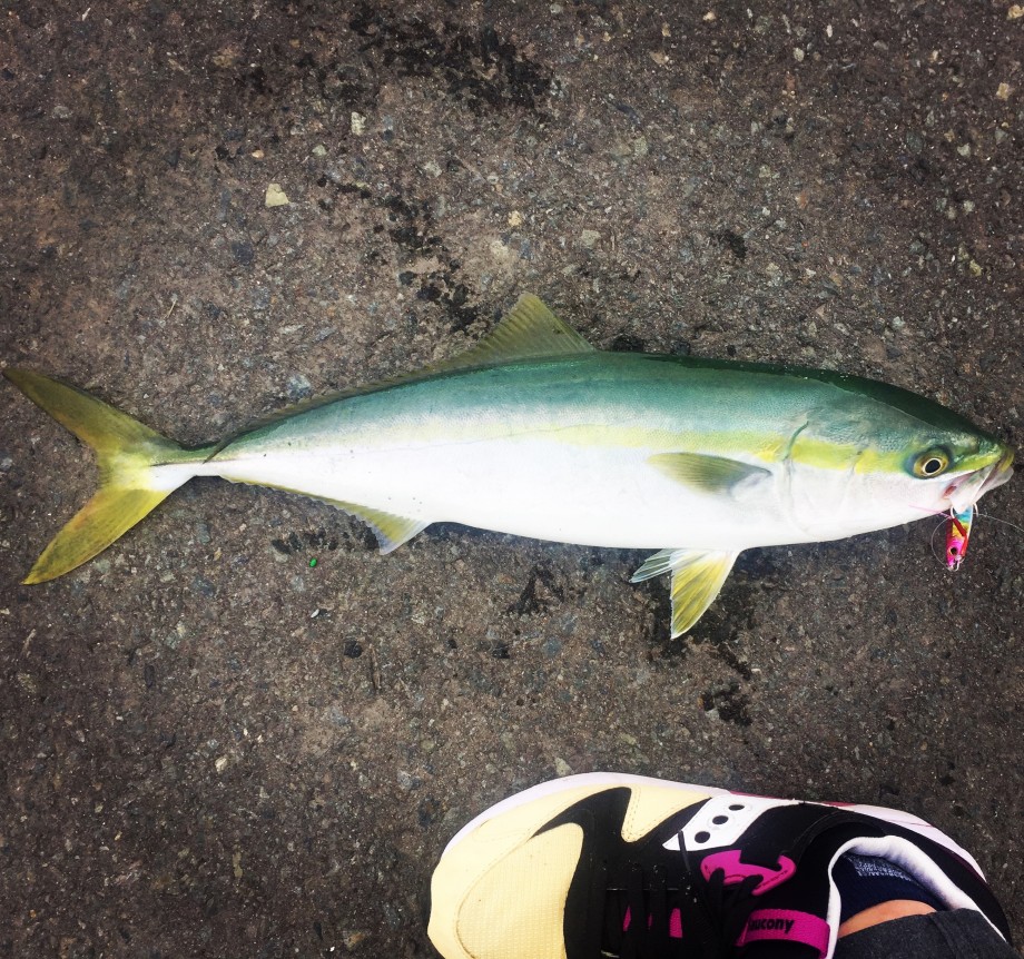 足元まで寄せてはきたものの、そのおぼつかない様子を見かねてか、隣の方にタモ上げしてもらいました(ありがとうございます!)。上がってみたら42cmの人生初イナダ!抜き上げれるサイズであったろうにもw素直に嬉しい!