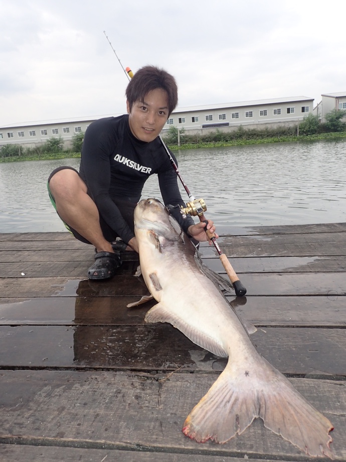 いざ掛けてみるとさすが引く引くと噂のメコンオオナマズ!
