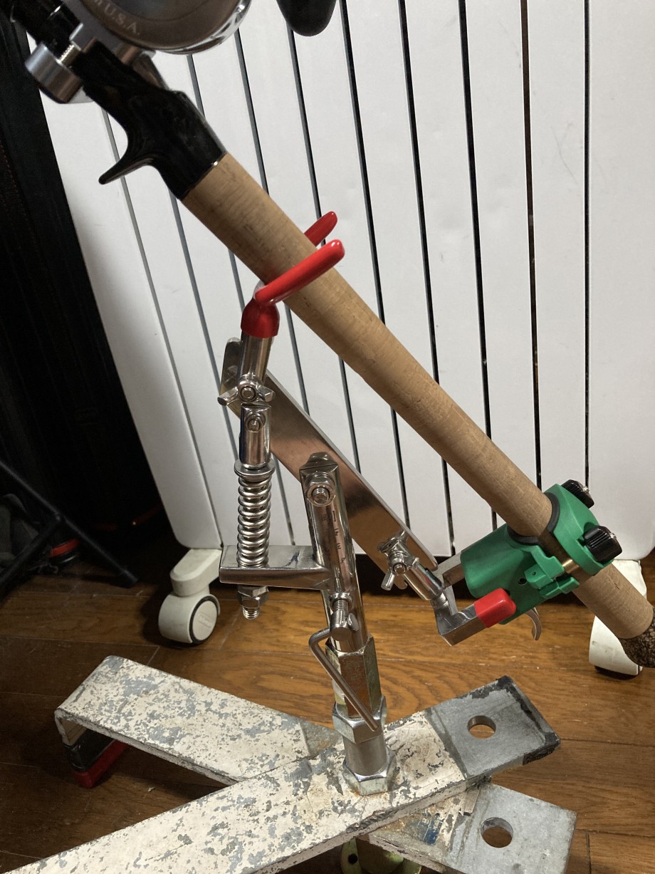 タマンピトンとかいう名で、魚が喰いつくとバネで竿がおじぎする仕掛けです。AVETにはベイトポジションでクリックをかけておけば、ジジジジ♪とリールが鳴ることに。。。