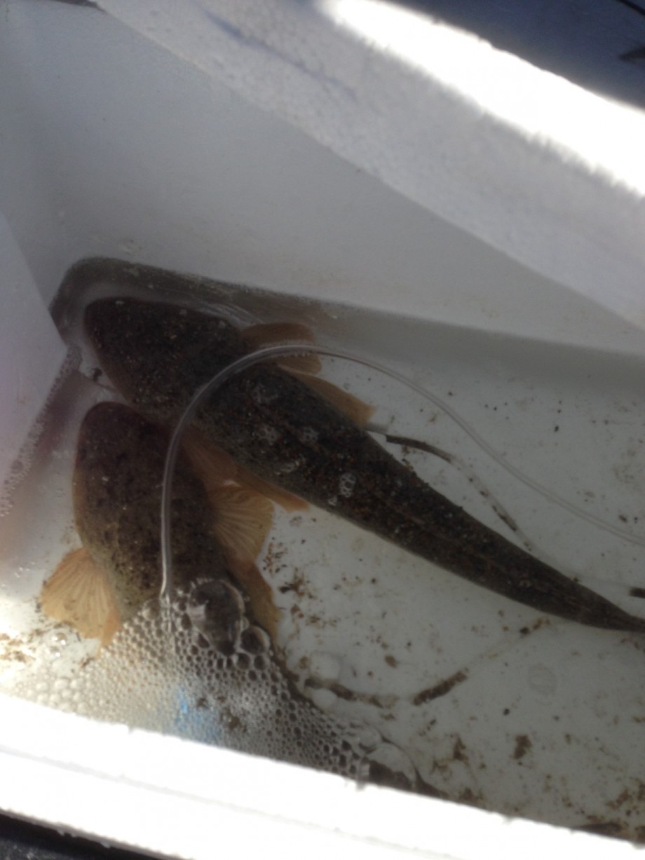 時合いっぽいですが・・・釣れた魚は美味しく食べたい主義なんで、即締め→砂に埋めるはせずに、車内のエアレーター付き発泡ライブウェルに運びます