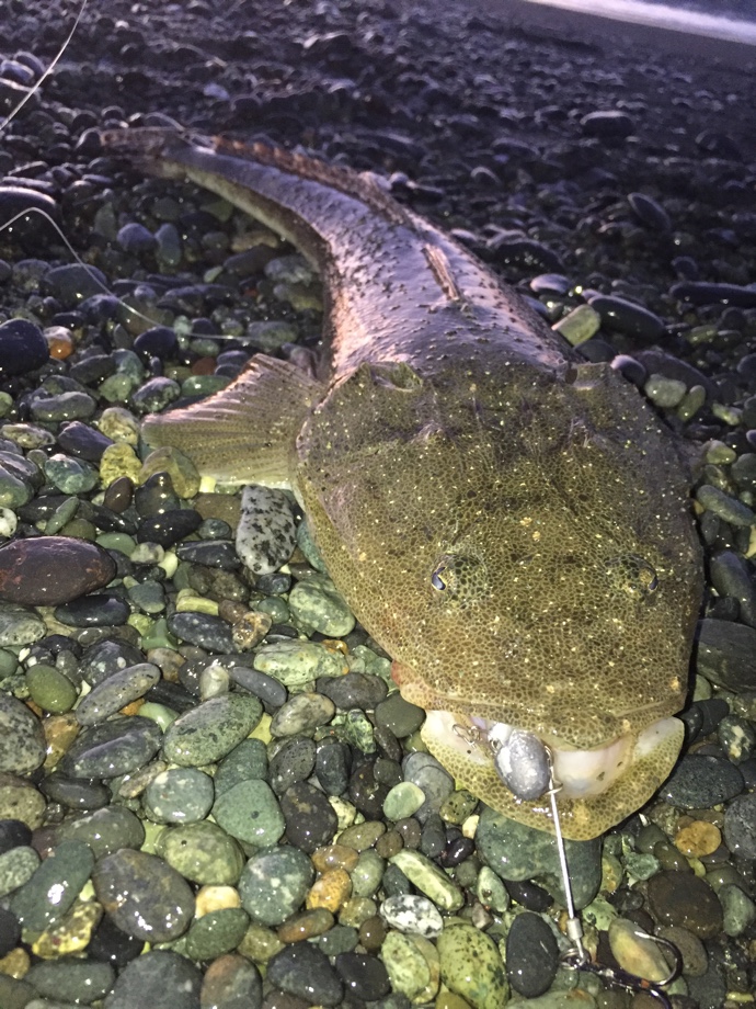 少し移動して潮目が岸から近くにある所を撃っていると待望のヒット!