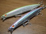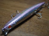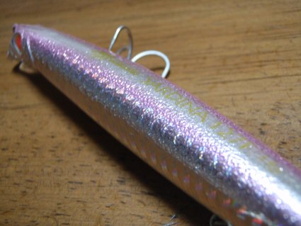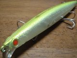 「ミスティパールチャート」:所謂テストカラーに近い色です。ほぼサンプルと言われるカラーはこのタイプが多いです。理由はアクションチェックがしやすいからです。ローリング系ミノーは更に背中へ「線」が入ったりしています。なぜか釣れるカラーなんですが(笑)意外と市販されていないカラーです。