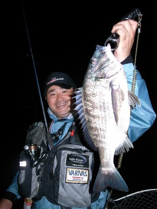 画像はレジャーフィッシングの取材時に釣った46cmのチヌ。チヌマウスW+ワームのセッティングにて。