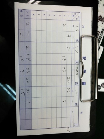 17:30~始めまして、久々のリアルな牌の感触に感動しながら打つこと2半荘、