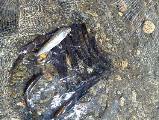 そうこう話をしていると鮎が跳ねて確かに水面が黒くなってる
