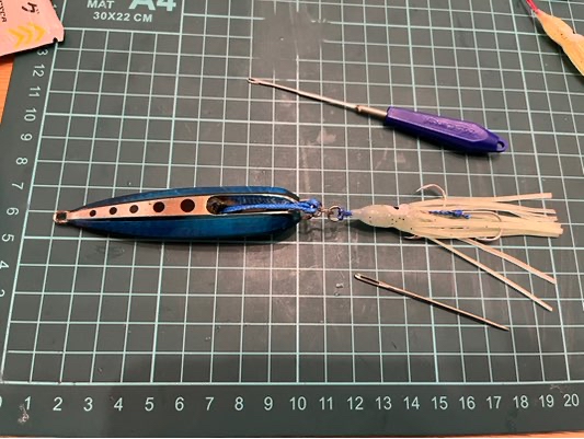 インチクには昔ながらの中通し式と、アイ、スプリットリングで繋ぐ形態2種類ありますが、(シマノのボトムシップは両方対応してます)