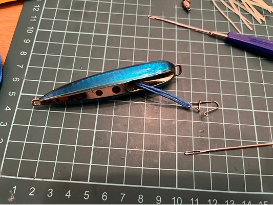 昔ながらのインチクは中通しの穴だけだったりするため、スプリットリングで装着するタイプにも対応できるように接続パーツを作りましょう