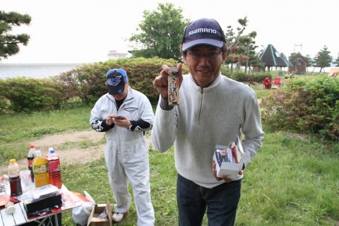 エントリーフィーがわりの各自で持ち寄った、いらないルアーも加算され豪華景品の争奪戦!