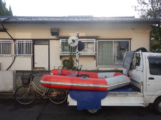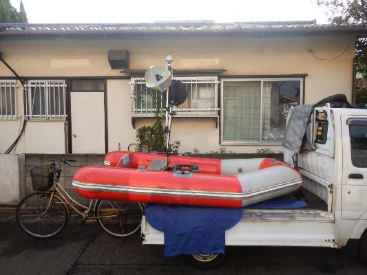 ▼ 14連竿立て収納篭と折り畳み式マストにレーダー反射器材と黒色球形象物を装着してみた