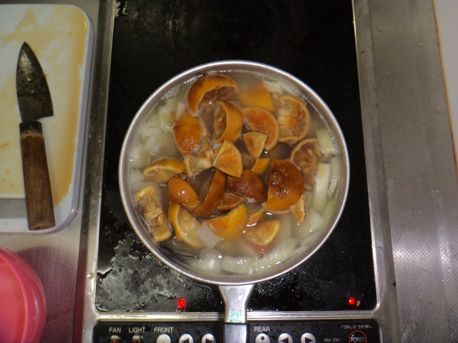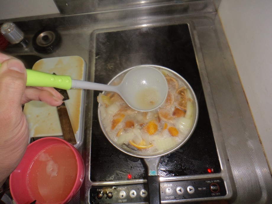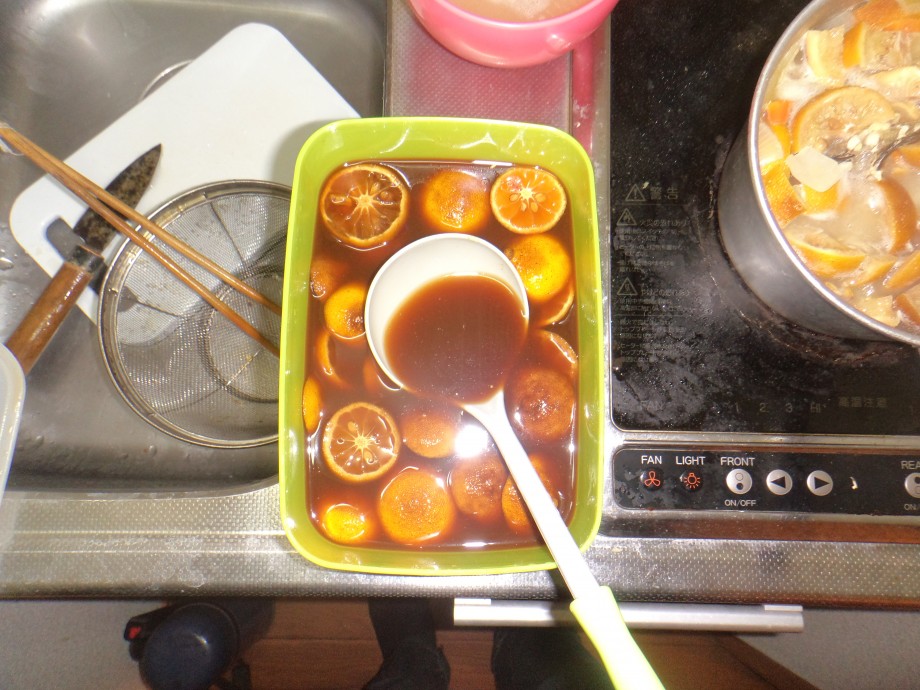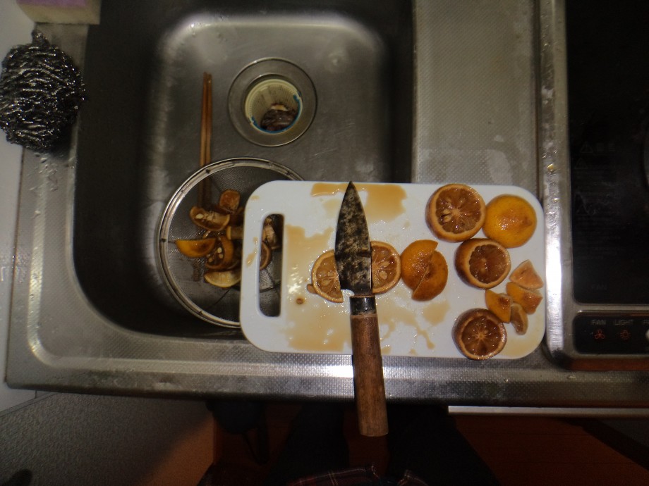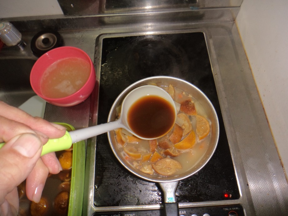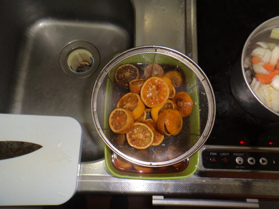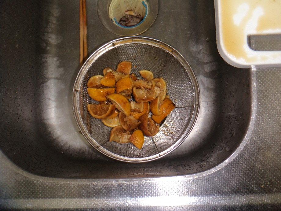 香り付けのカボスも具材に使いますので、汁気を切ります。