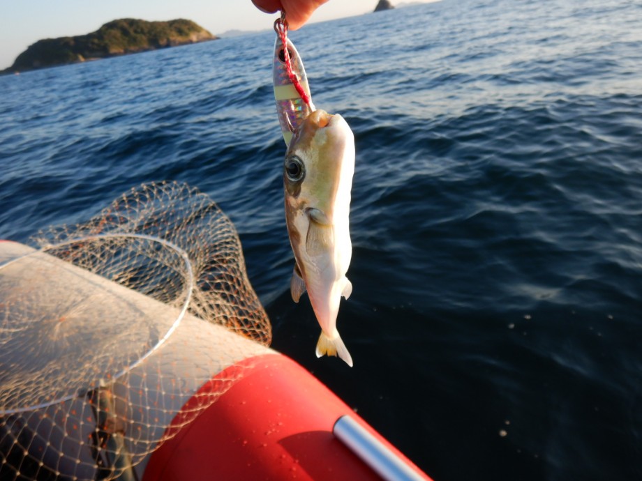 尾鰭の後縁が浅く凹んでいる、シロサバフグ、オオモンハタはベイトの小魚を追い回して捕食する魚食性の強い魚種。